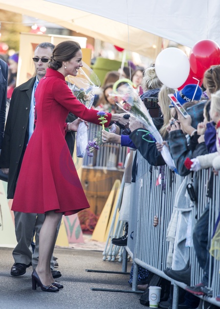 Ksiezna Kate w czerwonym plaszczu wsrod fanow, Kanada