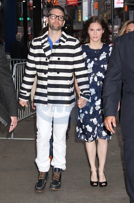Amanda Knox i jej chlopak Christopher Robinson wracaja z 'Good Morning America'