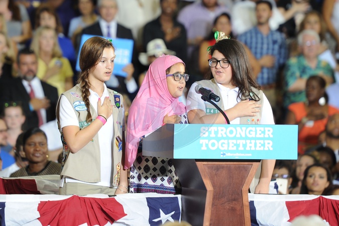 Hillary Clinton przemawia na wiecu w Coral Springs Gimnazjum