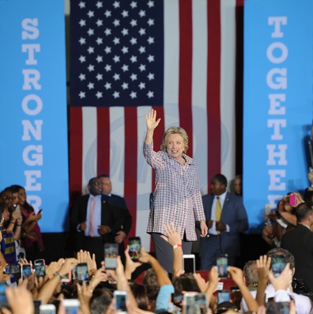 Hillary Clinton przemawia na wiecu w Coral Springs Gimnazjum