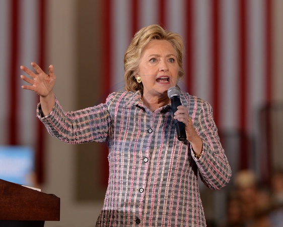 Hillary Clinton przemawia na wiecu w Coral Springs Gimnazjum
