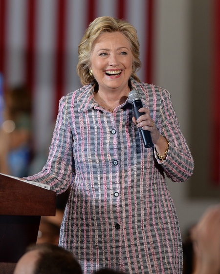 Hillary Clinton przemawia na wiecu w Coral Springs Gimnazjum