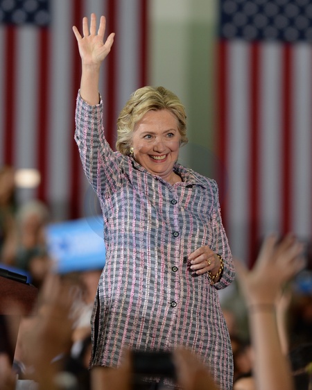 Hillary Clinton przemawia na wiecu w Coral Springs Gimnazjum