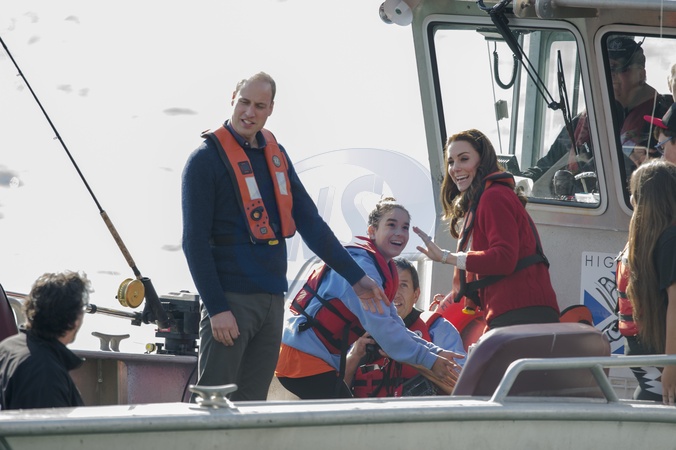 Ksiezna Kate w czerwonym golfie na lodzi, Kanada