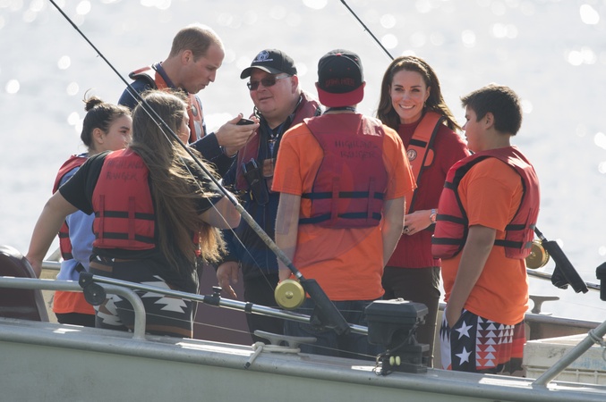 Ksiezna Kate w czerwonym golfie na lodzi, Kanada