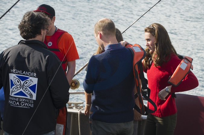 Ksiezna Kate w czerwonym golfie na lodzi, Kanada