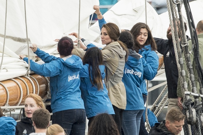 Ksiaze William i Kate w kurtkach parka na lodzi, Kanada