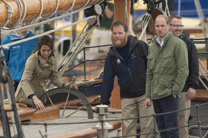 Ksiaze William i Kate w kurtkach parka na lodzi, Kanada