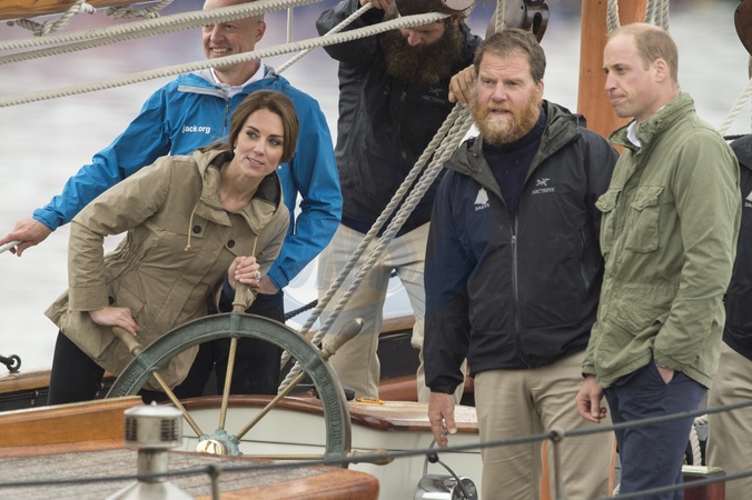 Ksiaze William i Kate w kurtkach parka na lodzi, Kanada