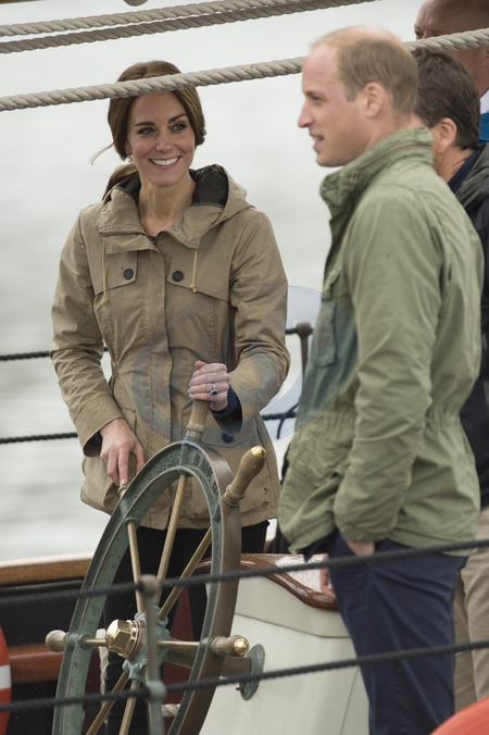 Ksiaze William i Kate w kurtkach parka na lodzi, Kanada