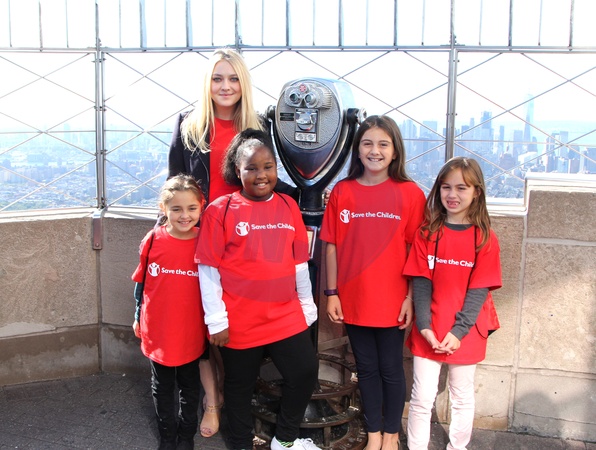 Dakota Fanning w czerwonej sukience na Empire State Building
