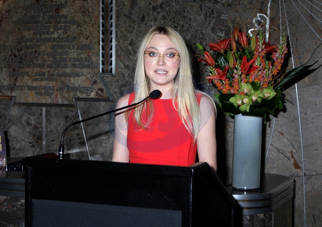 Dakota Fanning w czerwonej sukience na Empire State Building