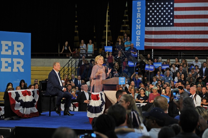 Hillary Clinton i Al Gore biora udzial w dyskusji o zmianach klimatu, Miami