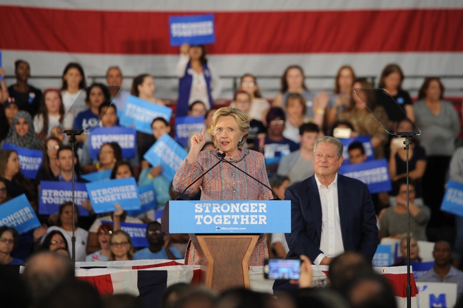 Hillary Clinton i Al Gore biora udzial w dyskusji o zmianach klimatu, Miami