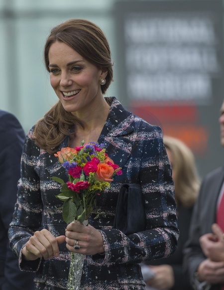 Ksiezna Kate w plaszczu w kratke i ksiaze William odwiedzili Manchester Town cz.2