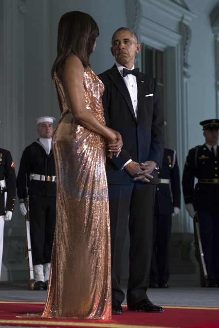 Przyjecie w Bialym Domu - Barack Obama, Michelle Obama i Matteo Renzi z zona