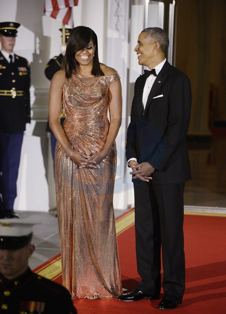 Przyjecie w Bialym Domu - Barack Obama, Michelle Obama i Matteo Renzi z zona