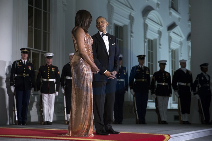 Przyjecie w Bialym Domu - Barack Obama, Michelle Obama i Matteo Renzi z zona