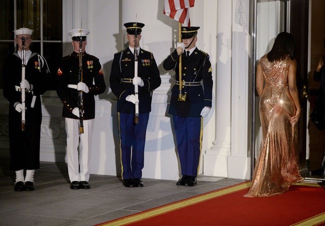Przyjecie w Bialym Domu - Barack Obama, Michelle Obama i Matteo Renzi z zona