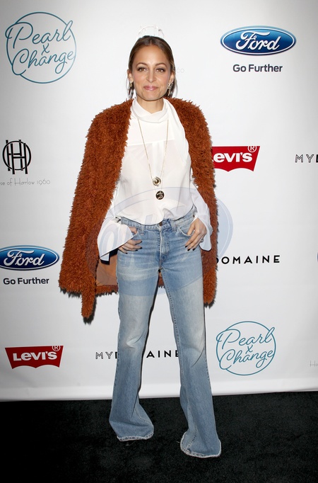 Nicole Richie w cieplym futrzanym swetrze i golfie, Pearl xChange 2016