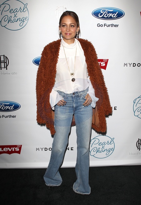 Nicole Richie w cieplym futrzanym swetrze i golfie, Pearl xChange 2016