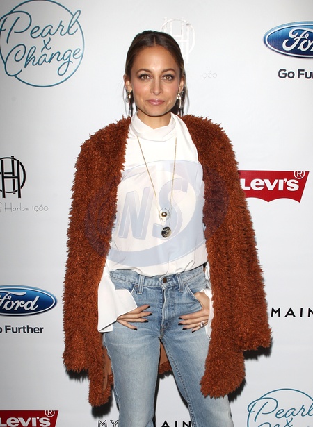 Nicole Richie w cieplym futrzanym swetrze i golfie, Pearl xChange 2016