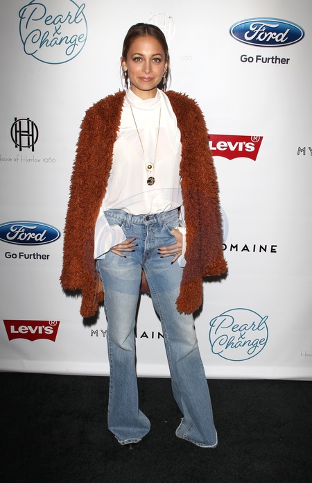Nicole Richie w cieplym futrzanym swetrze i golfie, Pearl xChange 2016
