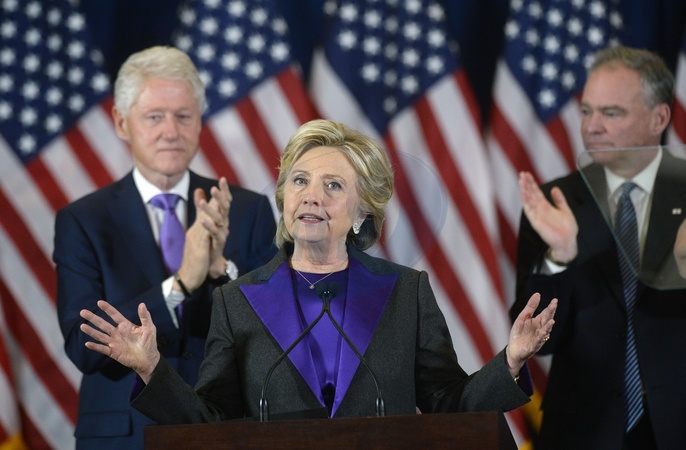 Smutni Clintonowie na przemowieniu po przegranych wyborach