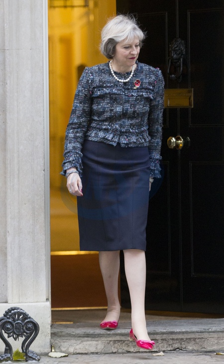 Theresa May w rozowych bucikach na spotkaniu z Victorem Orbanem