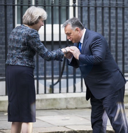 Theresa May w rozowych bucikach na spotkaniu z Victorem Orbanem