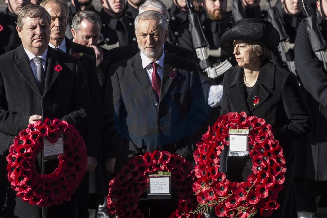 Brytyjska rodzina krolewska i politycy podczas obchodow Niedzieli Pamieci
