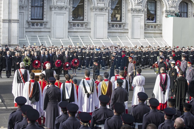 Brytyjska rodzina krolewska i politycy podczas obchodow Niedzieli Pamieci