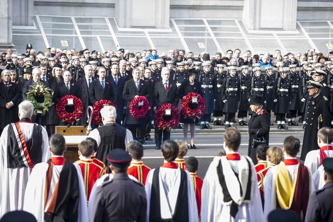 Brytyjska rodzina krolewska i politycy podczas obchodow Niedzieli Pamieci