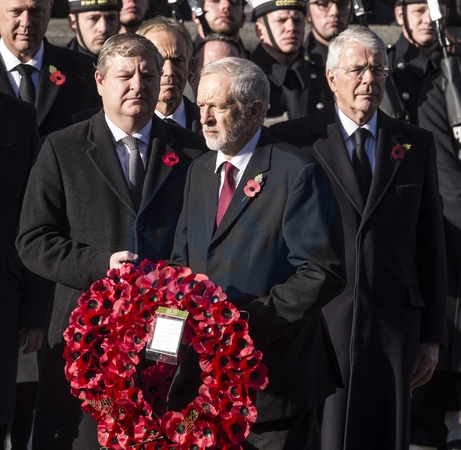 Brytyjska rodzina krolewska i politycy podczas obchodow Niedzieli Pamieci