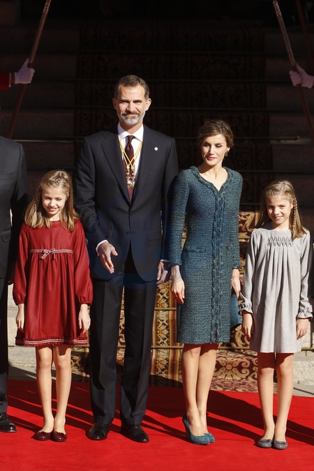 Ksiaze Filip i Letizia z corkami w Narodowym Parlamencie