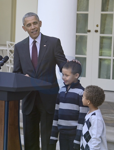 Barack Obama z siostrzencami podczas Swieta Dziekczynienia