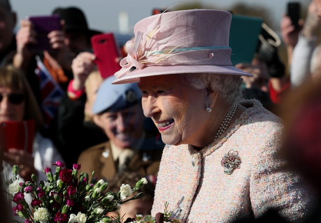 Krolowa Elzbieta II przy swoim pomniku z konmi