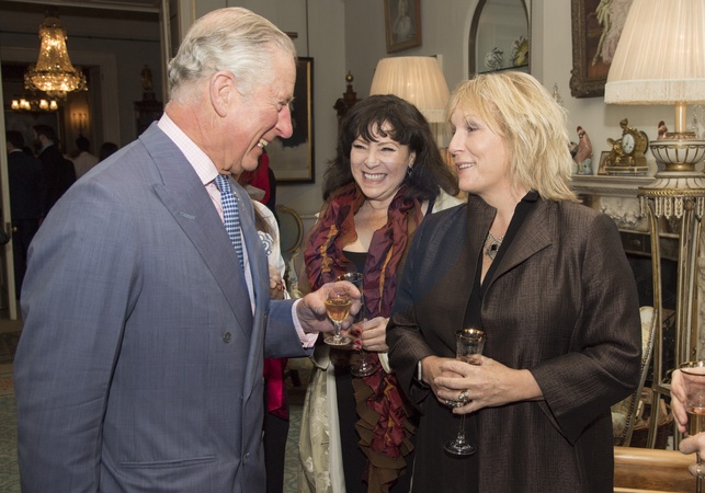Ksiaze Karol w gronie kobiet kroi tort w ksztalcie stanika