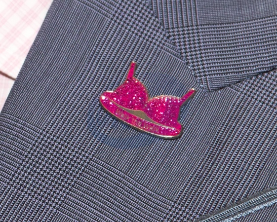 Ksiaze Karol w gronie kobiet kroi tort w ksztalcie stanika
