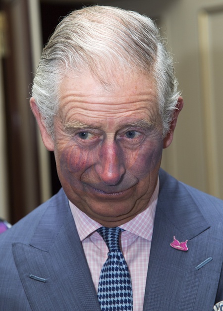 Ksiaze Karol w gronie kobiet kroi tort w ksztalcie stanika