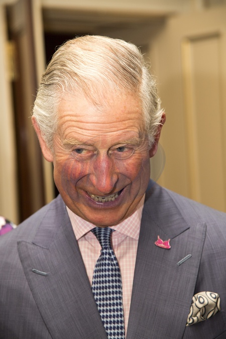 Ksiaze Karol w gronie kobiet kroi tort w ksztalcie stanika