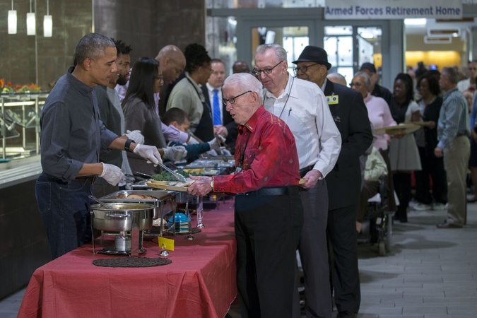 Barack Obama z zona rozdaja posilki w Swieto Dziekczynienia