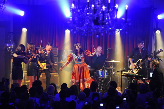 Sophie Ellis-Bextor na scenie w folkowej sukience