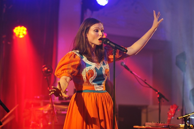 Sophie Ellis-Bextor na scenie w folkowej sukience