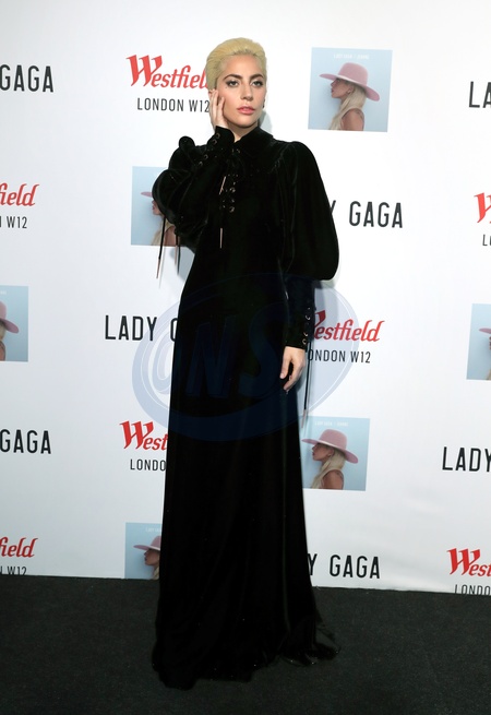 Lady Gaga w czarnej sukni z bufiastymi rekawami