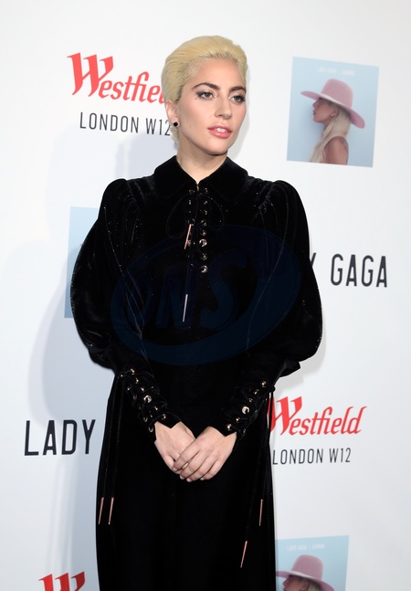 Lady Gaga w czarnej sukni z bufiastymi rekawami