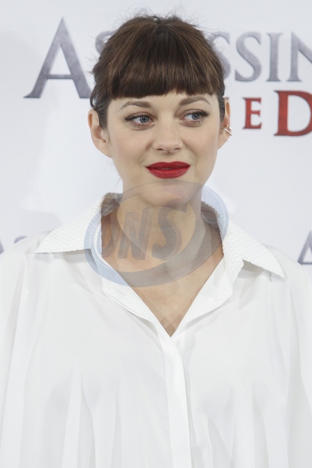 Marion Cotillard w bialej koszuli na photocall Assassins Creed, Madryt