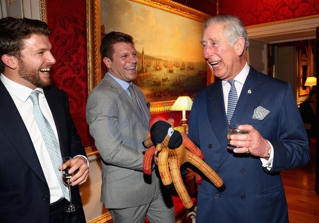 Ksiaze Karol z pluszowymi malpkami