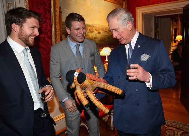 Ksiaze Karol z pluszowymi malpkami