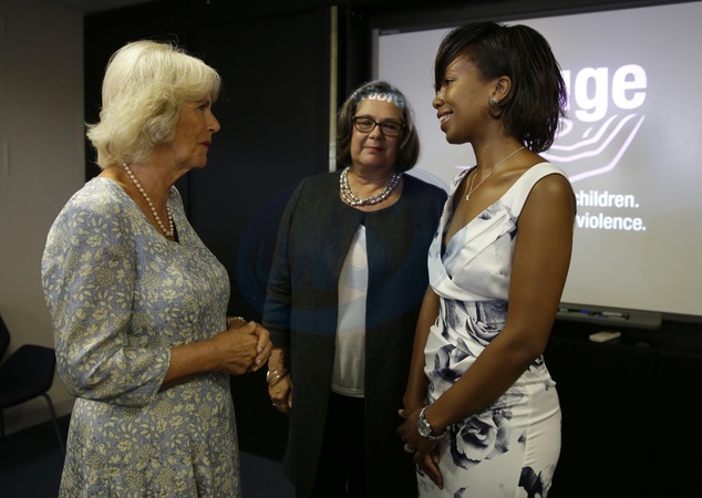 Ksiezna Camilla i Patrick Stewart spotkali sie z ofiarami przemocy domowej
